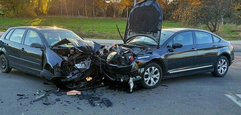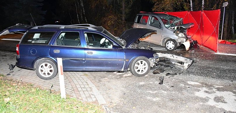 Czołowe zderzenie aut. Młody mężczyzna poważnie ranny