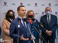 Przekazanie nowych ambulansów dla Wojewódzkiej Stacji Pogotowia Ratunkowego w Rzeszowie i podsumowanie funkcjonowania skoncentrowanej dyspozytorni medycznej i systemu Państwowe Ratownictwo Medyczne to główne punkty wtorkowej konferencji prasowej wojewody Ewy Leniart. 11 stycznia 2022 r.